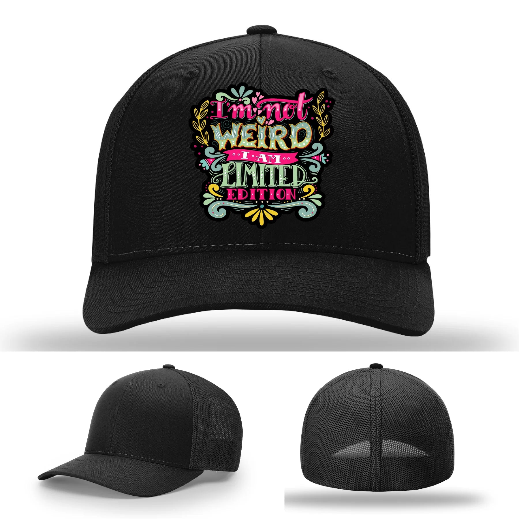 The I’m Not Weird Leather Patch Hat is made for the originals, the outliers, and the proudly different. Forget “normal”—this hat makes a bold declaration in full color: “I’m not weird. I am limited edition.” Whether you’re rocking it at a festival, on a road trip, or just in your everyday rotation, this one is designed to stand out just like you do.