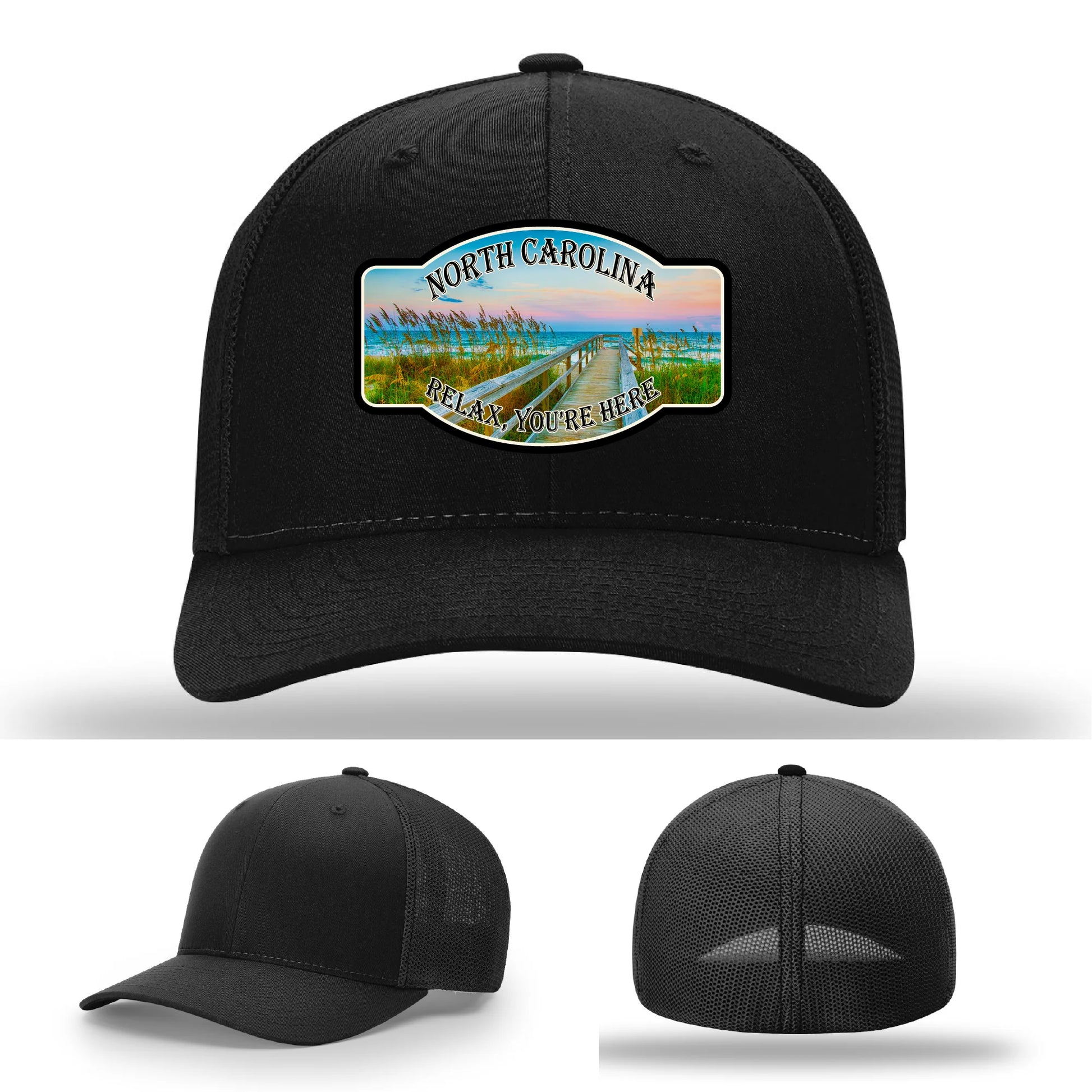 This isn’t just another hat—it’s a state of mind. The Relax You’re Here Leather Patch Hat pulls the North Carolina coast straight into your gear lineup with a patch that feels like the beach is calling your name. Pastel skies, a quiet boardwalk, and the words Relax, You’re Here printed on real leather set the tone every time you throw it on.